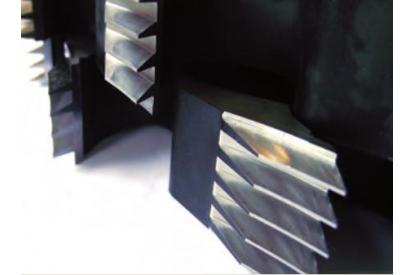 Фреза для нарізки мінішипа оснащена новим ріжучим матеріалом "HS Solid 34", перевагами якого стають очевидні при обробці деревини низької якості