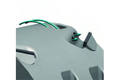 Система AirStream-System впливає і на відвід стружки. Обертання інструменту впливає на потік повітря і спрямовує стружку точно в потрібний час до аспіраційного кожуха. Якість відводу стружки без перебільшення зростає до 97-99 відсотків. Це приводить до більш тривалого терміну експлуатації, оскільки ризик подвійного  подрібнення суттєво знижується. Більше того на очищення машини потрібно значно менше часу.