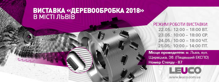Знову наближається виставка "Деревообробка". І наша команда вже з нетерпінням чекає на зустріч з Вами. LEUCO, як завжди, підготувала для Вас максимум інформації про всі наші новинки. Ми пропонуємо Вам професійні консультації, найкращий інструмент, правильні рішення, широкий вибір та привітні посмішки. Завітайте до нашого стенду №87. Ми чекаємо Вас з 22 по 25 травня у Львові.