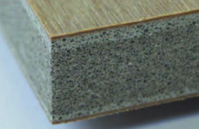 Це поєднання вогнетривкого центрального шару з високоякісним верхнім шаром — звичайний матеріал для F/LIST. У цьому випадку абразивне видувне скло поєднується із крихким шпоном. Форматна дискова пила LEUCO DIAREX справляється з цим матеріалом.