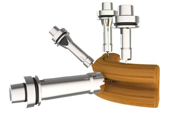 Важкодоступні місця можуть бути оброблені на верстаті з ЧПУ, завдяки новому LEUCO цанговому патрону зі стандартними фрезами і свердлами. Подовжені Цангові патрони для 5-осьових верстатів