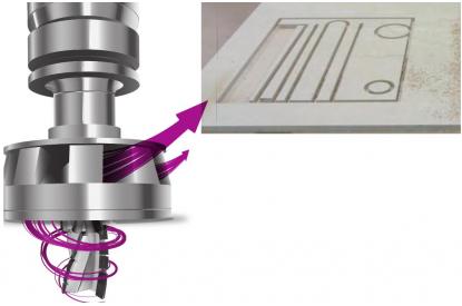 Схожа на невелику турбіну, система затиску інструменту і видалення стружки AEROTECH підвищує якість видалення відходів обробки від фрези CM, направляючи їх вгору - до входу в інтегровану систему аспірації. Вражаючу ефективність всієї цієї комбінації можна побачити, поглянувши на незначну кількість пилу та стружки, що залишаються після обробки на деталях, а також всередині виконаних прорізів. Крім того, в процесі роботи AEROTECH виникає потік прохолодного повітря, який охолоджує фрезу, що сприяє збільшенню терміну дії інструменту.