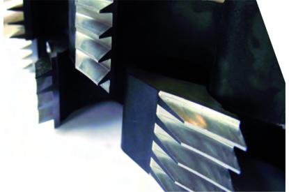 Нові фрези для нарізки мінішипа від LEUCO завдовжки 4/4.5 або 6/7 мм і більшою кількістю різальних граней відповідають обом вимогам. Завдяки низькому тиску різання вони розрізають широкі поперечні шви, залежно від верстата, на короткі планки починаючи з приблизно 250 мм без ризику отримати ефект важеля на швидкості подачі до 52 м/хв. Частота обертів і якість з’єднання шипів є такими ж, як і у фрез з меншою кількістю різальних крайок.
