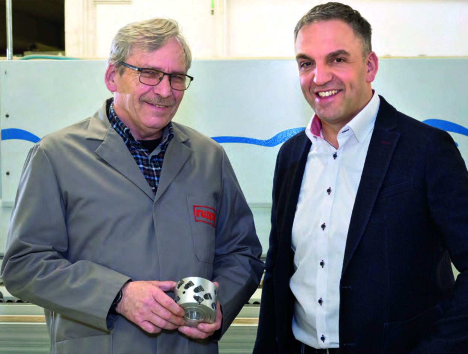 В арсеналі Ruppel кілька прохідних верстатів. Упродовж кількох років менеджер з виробництва Петер Шульц (ліво-руч) та експерт з інструментів LEUCO Хайко Шпес використовували алмазну SmartJointer на крайколичкувальному верстаті. Раніше Шульц намагався підбирати партії відповідно до товщини панелей, що ускладнювало процес обробки. Використання SmartJointer зараз дозволяє їм обробляти матеріали гнучко та оперативно відповідно до потреб виробництва.